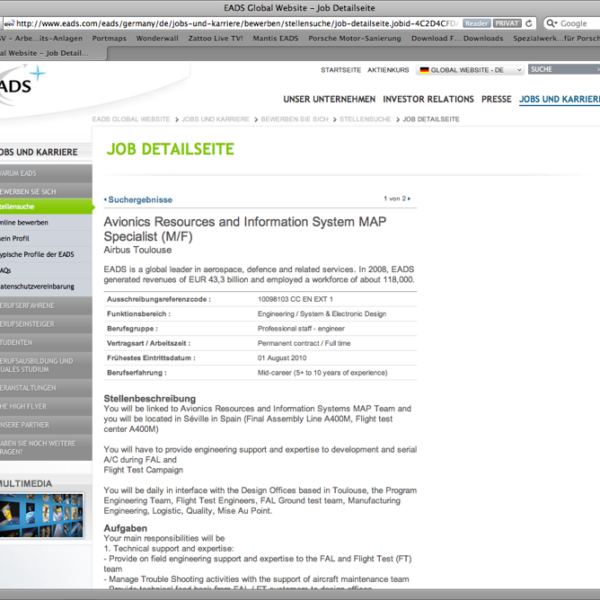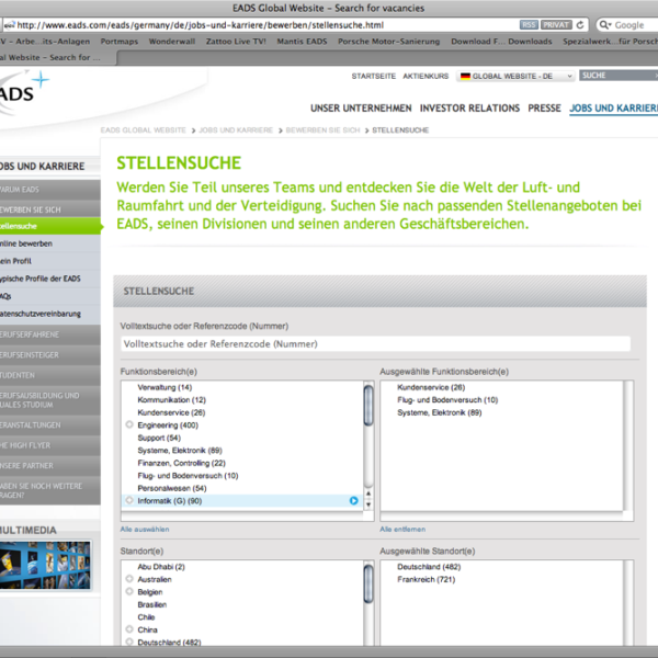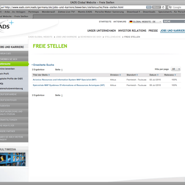 Konzept und Implementierung des HR Moduls der Website von EADS. Erstmals mit Online Bewerbung Prozess. Category: DigitalVon markus@faromedia.deApril 22, 2021 Share this post Share on FacebookShare on Facebook Project navigationZurückPrevious project:World Of Finance (WOF) für Jung DMS & iCeNächstesNext project:SCHAEFFLER Masterplan